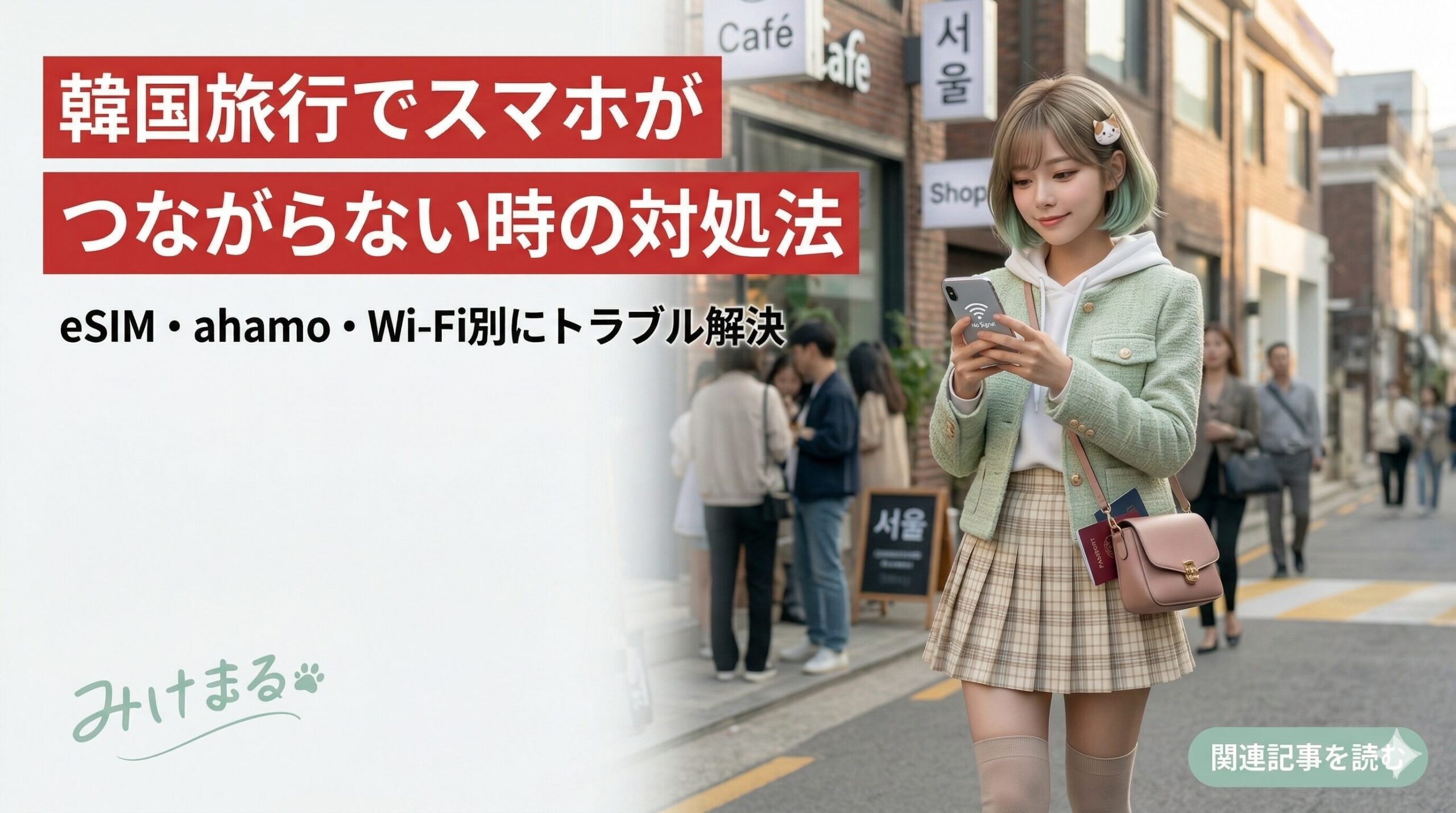 この記事では、韓国旅行でスマホがつながらない時に確認したいポイントを、eSIM・ahamo・Wi-Fiレンタルそれぞれに分けて、初心者向けにわかりやすくまとめました。