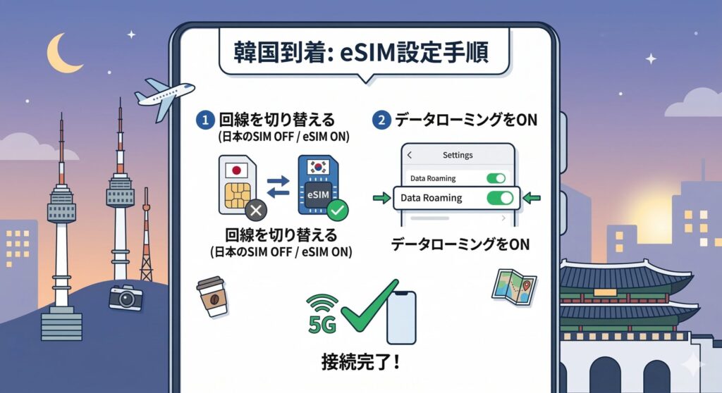 韓国旅行eSIM設定ガイド|設定のタイミングはいつ?繋がらない時の対処法まで徹底解説