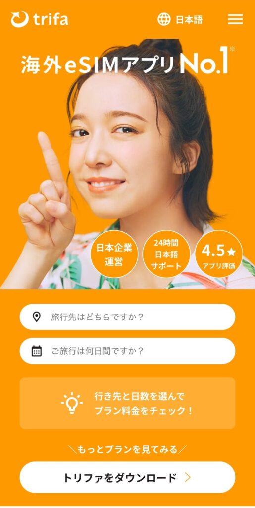 「現地でやればいいや」と思っていると、Wi-Fiのない場所で困ることになります。 trifaならアプリを入れるのは無料です。まずは自分のスマホが対応しているか、どんなプランがあるかだけでもチェックしておきましょう。